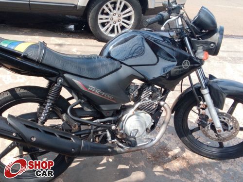 Moto com freio a discos e roda de liga leve.
