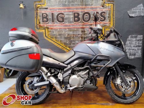 Com baús laterais, case traseiro, bolha frontal, protetor de mãos.