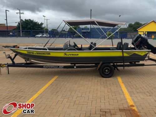 Sistema auto lubrificante com power trim, 4 poltronas, tanque de 60 litros, iluminação completa interna e externa, farol na proa, sonar Garmin Striker Plus 4, capota toldo, lona, remo e passagua.