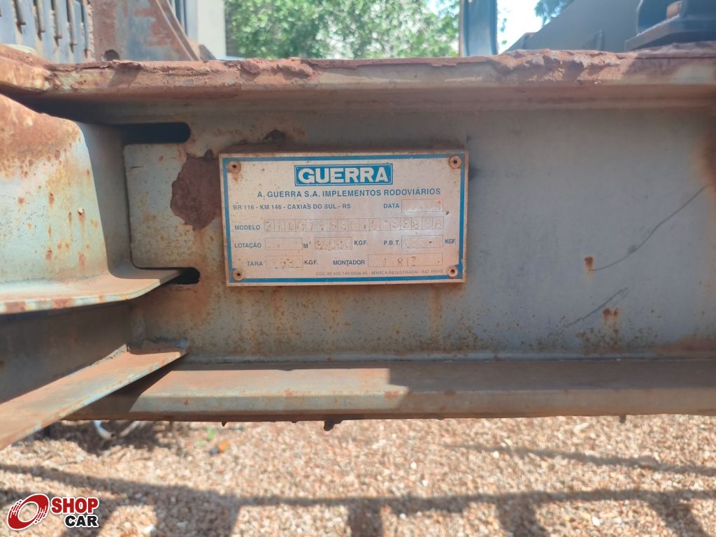 Descrição do veículo: Trans tora carreta 03 eixos, ótimo estado, pneus 60% vida útil, rodas 295, trans tora seminovo,12,40 comprimento, marca guerra com pneus, suspensor.