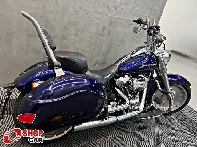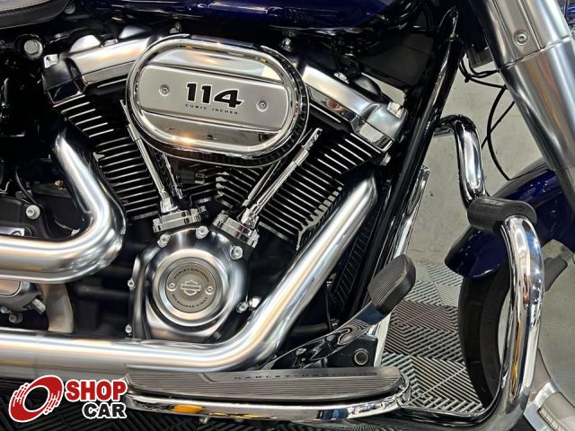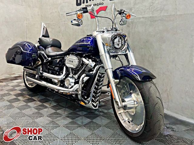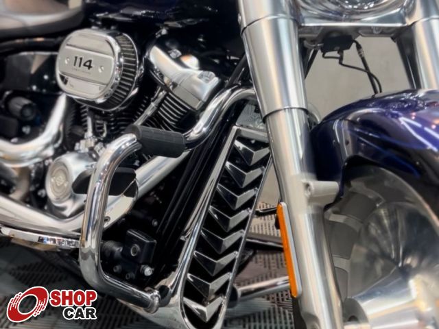 Mais opcionais: Guidão Diablo Hanger 14, sissy bar cromado com encosto, alforjes rígidos, plataforma de descanso cromada, mata-cachorro escamado, escape original Milwaukee-Eight 114 cromado, rodas Fat Boy usinadas e polidas e farol LED originais.