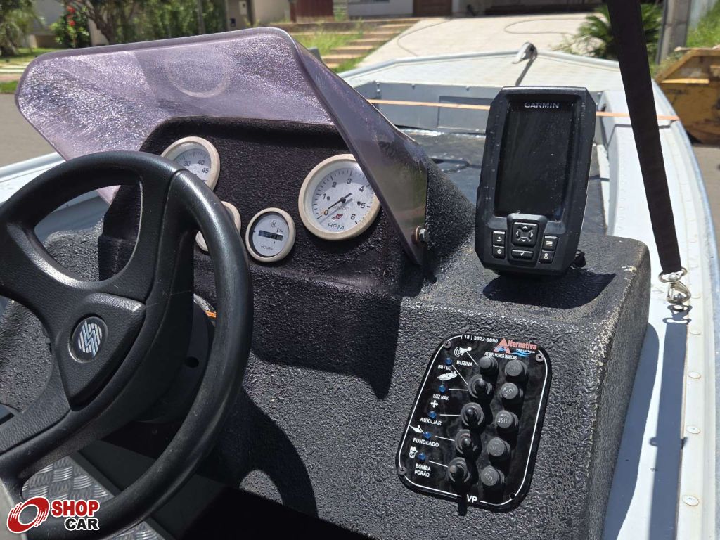 Observações do anunciante:Lancha em bom estado de conservação. Motor 40hp, 2 tempos. Duas baterias de 60a na popa, com chave seletora. Uma bateria de 100a na proa para alimentação do motor elétrico. Compartimento de bagagem na proa. Piso plano. GPS Garmin pra navegação